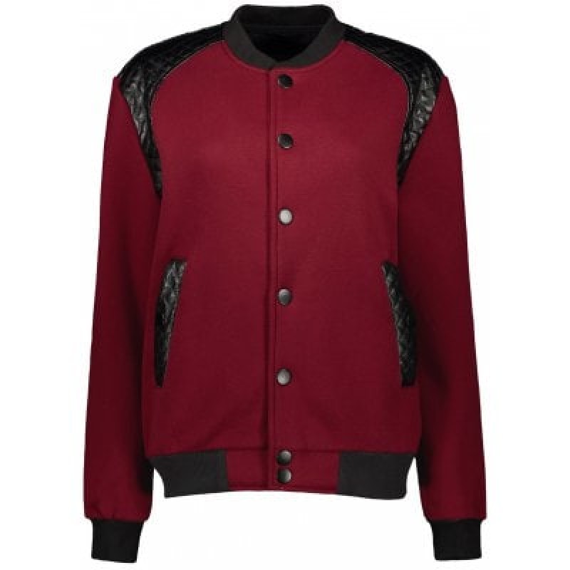 Stand Collar PU-Leather Splicing Jacket