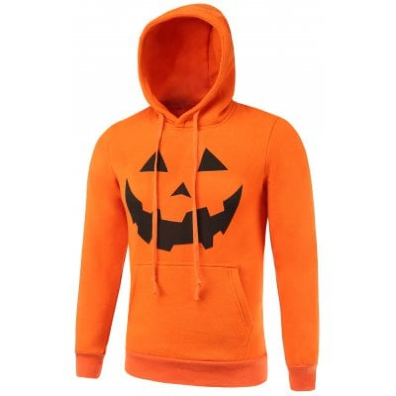 Kangaroo Pocket Drawstring Hallowmas Orange Hoodie