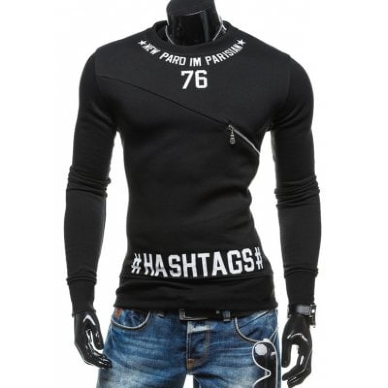 Crew Neck Zipper Embellished 76 Printed Sweatshirt