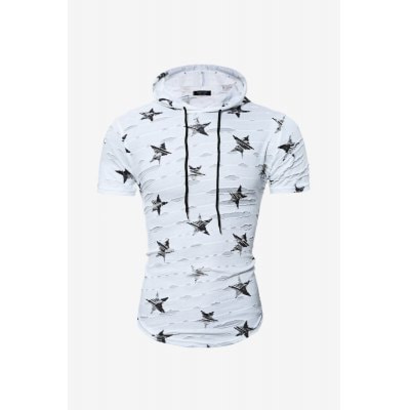 This star print T-shirt is fashion. The hooded design shows the special feature. The T-shirt is casual and cool, it is perfect during this summer with shorts or fashion pants, it will provide you a great time.