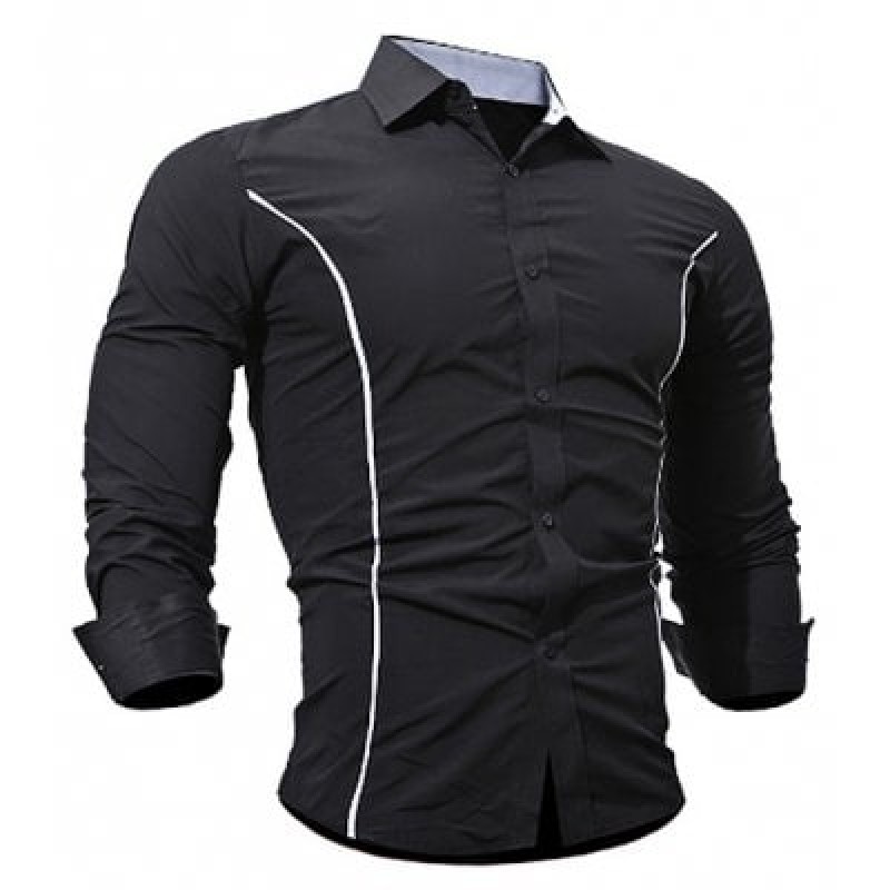 This is new style slim selvage leisure long-sleeved T-shirt for men. Made from 80 percent cotton + 20 percent polyester material. Fashionable style and comfortable touch feeling can make you become handsome. You can wear it with necktie and suit.