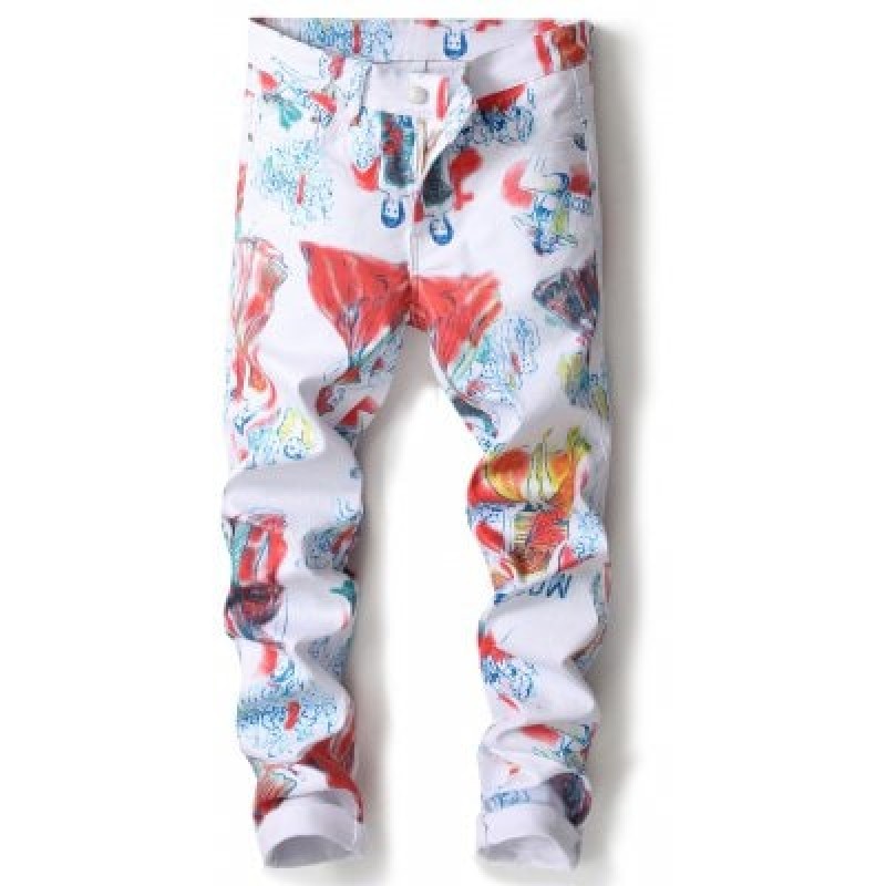 Zipper Fly Straight Leg Cartoon Painting Print Jeans